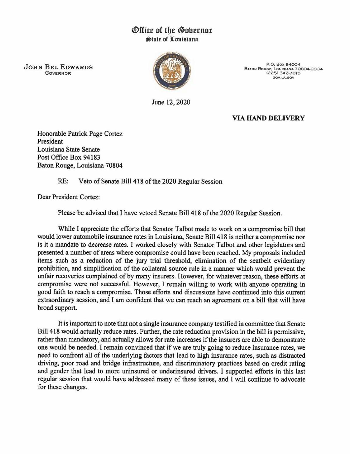 Veto Message On Tort Reform Theadvocate Com